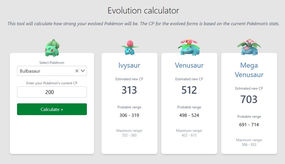 For example, evolving an Eevee can result in different evolutions, and this tool helps you estimate their future strength before committing.